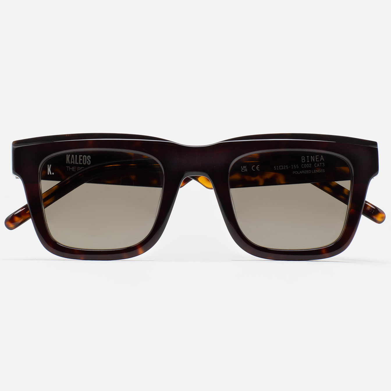 Τα KALEOS BINEA είναι unisex γυαλιά ηλίου με τετράγωνο κοκάλινο σκελετό. Οι φακοί είναι 100% απορροφητικοί σε UVA και UVB ακτινοβολία. Διαθέτονται σε Μαύρο σκελετό με γκρι κρυστάλλινους φακούς, και σε Καφέ ταρταρούγα σκελετό με καφέ polarized φακούς.